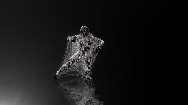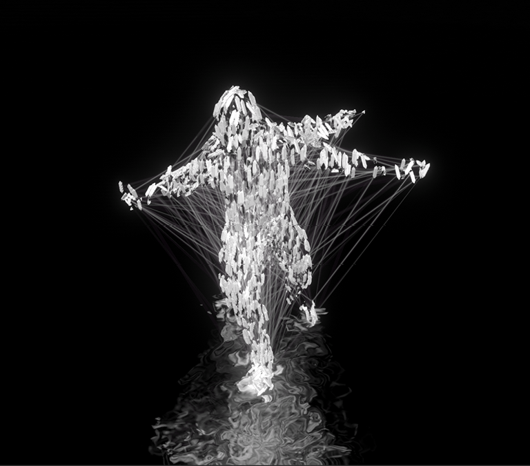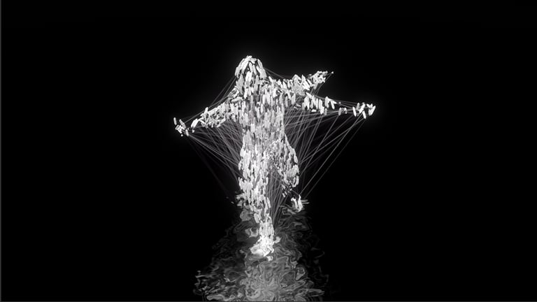"ShellShock" is an experimental multimedia performance delving into trauma and PTSD through human movement, utilizing motion capture technology to create real-time audio-visual content. The project aims to fuse digital media with theatre and Performing Arts, utilizing motion capture as an expressive tool for generating visuals and sounds. "ShellShock" was developed in HSRW media-labs.